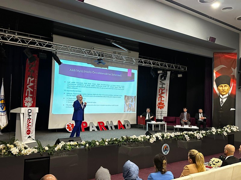Panelin “Acil Sağlık Hizmetleri ve Akademik Yükseliş” başlıklı ikinci oturumunda sunum gerçekleştiren Prof. Dr. Handan Çam, “Yapay Zekâ Destekli Tıbbi Uygulamalar” konulu konuşmasında, yapay zekâ teknolojilerinin sağlık hizmetlerindeki güncel kullanım alanlarını ve özellikle acil sağlık süreçlerine sağladığı katkıları değerlendirdi. Klinik karar destek sistemleri, dijital sağlık altyapıları ve veri temelli yönetim yaklaşımlarının sağlık hizmetlerinde kalite ve etkinliği artırmadaki rolü vurgulandı.